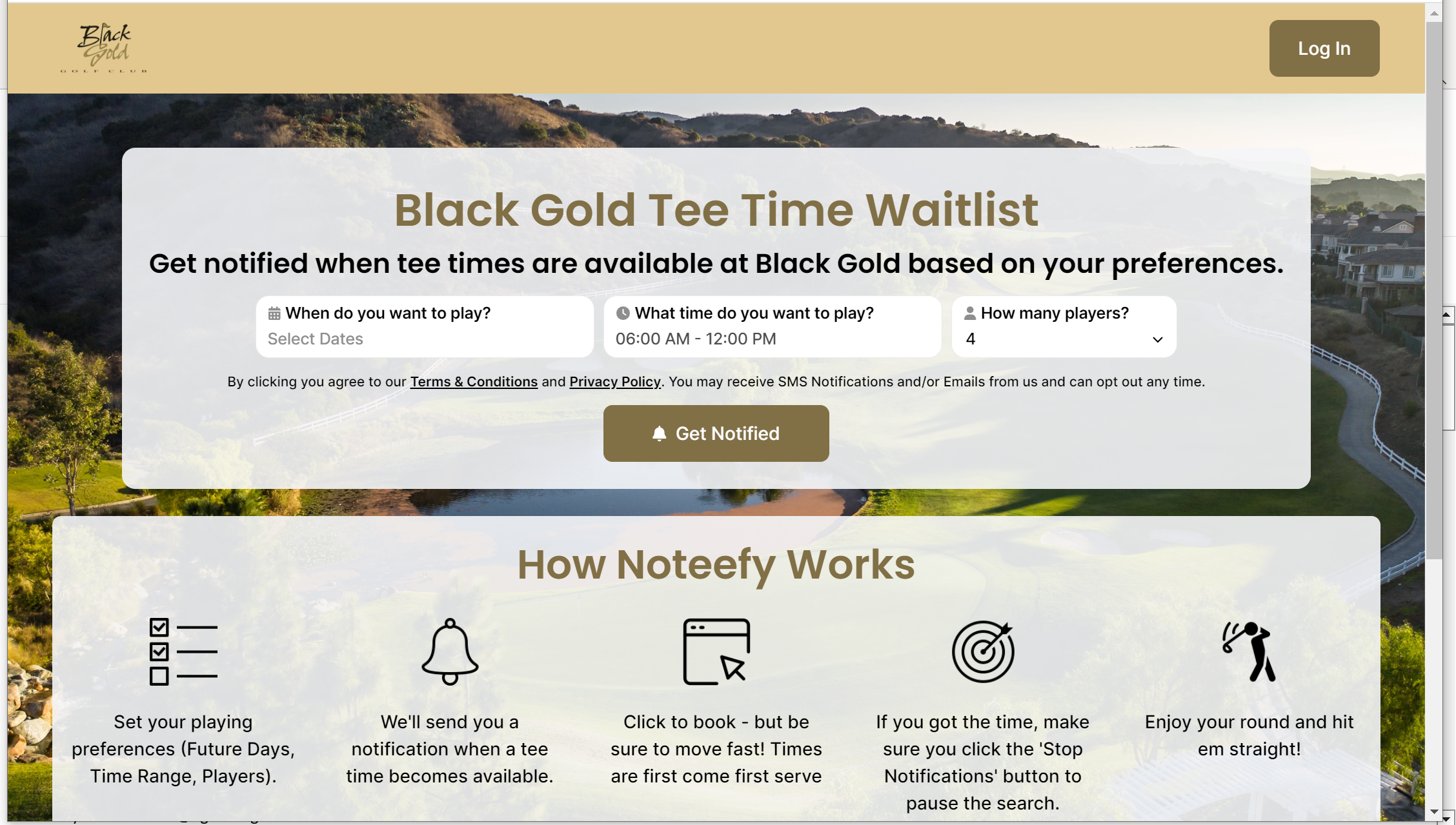 Here’s how it super-simply works: Through courses’ websites, golfers desiring tee times already taken receive real time text and e-mail alerts when those slots open due to cancellation. They then book tee times online per the normal process.