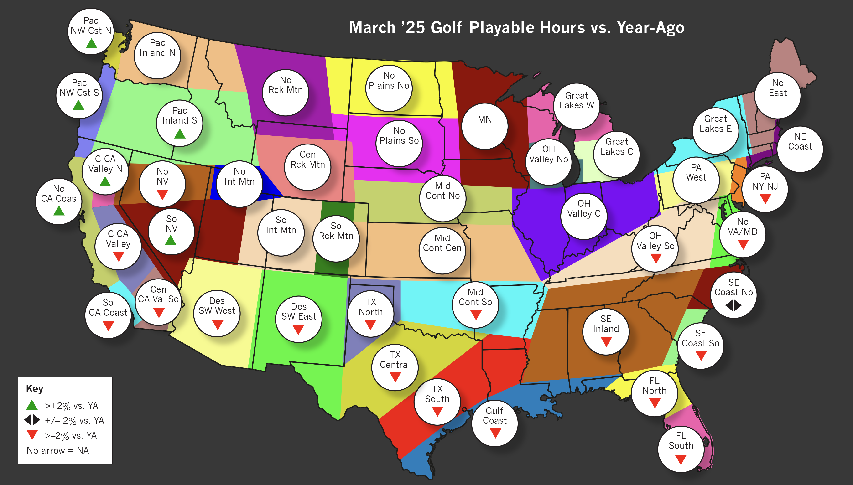 HIGH: Pacific NW Inland South: 25.7%                       LOW: Ohio Valley South: -45.6%